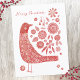 O estilo de arte popular escandinava, vermelho e branco, cartão de Natal festivo. Altere ou remova a saudação na frente e o endereço na parte traseira para personalizar. Arte original de Nic Squirrell.