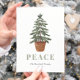 Este simples cartão postal de feriado apresenta uma ilustração aquosa de uma árvore verde-everdeada numa cesta. A palavra "PEACE" aparece em letras grandes, sage verdes serif que se coordenam com a arte. Adicione o nome da sua família e o ano em itálico de cinzas carvões, e o seu endereço de retorno no verso