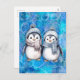 Cartão Postal De Festividades Pinguins de Aquarela Azul-Inverno Escarpando Chapé