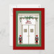 Esta é uma cena decorada de porta com ornamentos verdes, transparentes, malucos e natal alegre por cima da porta. veja itens correspondentes na minha galeria de Natal sagrada