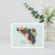Enviem saudações do estado do sol com estes cartazes encantadores com um mapa da silhueta do estado da Flórida enfeitiçado com laranjas, verde-luxuoso e flores tropicais num fundo verde-menta pastel com uma fronteira branca. "Desejos Quentes" aparece em dentro de tipografia branco, escrita à mão, na forma do estado, juntamente com o nome da sua família ou a escolha de saudar. Adicione uma mensagem pré-impressa personalizada ao verso, se desejar.