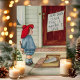 Belos natais vintages postais. "Querido Papai Noel, aqui é onde eu moro" escrito em uma nota na porta. Este design apresenta uma criança adorável postando uma carta aos Papais noeis na porta da frente.