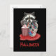 Cartão Postal De Festividades Raccoon bebe coquetel com crânio