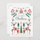 Um design simétrico encantador com duas renas adornadas com padrões geométricos, cercadas por pequenas árvores e enfeites de Natal. O uso de tons rosa, verde e vermelho cria uma cena de Natal caprichosa e inspirada no estilo nórdico, com elementos da natureza estilizados e formas festivas tradicionais.