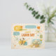 This cheerful Labor Day design blends playful mid-century Atomic Age style with warm, handmade charm. Set on a lightly textured cream background, bold retro typography announces “Happy Labor Day” amid colorful geometric shapes, starbursts, and atomic motifs. Thoughtful details—crossed tools tied with rope, a woven basket of daisies, and seaside accents like shells and a starfish—symbolize both the effort of work and the joy of rest. The lively color palette of teal, mustard, orange, and soft neutrals gives the artwork a fun, optimistic feel with a modern-vintage vibe.