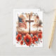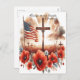 Esta cena de aquarela homenageia os caídos com uma cruz de campo de batalha entre papoilas e bandeiras americanas. Acima, um céu macio com raios de sol e nuvens à deriva adiciona um tom de tributo pacífico. Terracotta, oliveira e matizes denim trazem a design para uma paleta quente e rústica de Americanas. Uma peça em movimento cheia de respeito e memória.