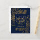 Cartão Postal De Festividades Script Dourado Floral de Tocha Azul de Marinho Mod