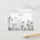 Um esboço preto limpo de flores silvestres é um pano de fundo para este simples cartão postal que pode ser personalizado para o seu evento; noivado, aquecimento da casa, novo anúncio do bebê, ou qualquer outra ocasião.
