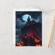 Mande lembranças de Halloween arrepiantes com este cartão postal atmosférico incrível! A design épica captura um magnífico e assustador castelo de vampiro encalhado sobre um penhasco traiçoeiro, iluminado pelo brilho assombroso de uma lua de cheio. Uma escada de pedra longa e enrolada, alinhada com uma trilha sinistra de jack-o-lanternas brilhantes, leva até a entrada do castelo enquanto morcegos enxergam o céu noturno nublado. Este cartão-postal encarna perfeitamente o espírito do Dia das Bruxas, misturando o horror gótico clássico com o brilho festivo das abóboras. É a escolha ideal para enviar uma mensagem realmente memorável e assustadora nesta temporada de férias.