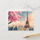 Paris floresceu em cheio com esta ilustração sonhadora do estilo aquarela da Torre Eiffel enquadrada por delicadas flores cor-de-rosa de cereja. Os céus pastéis macios e os telhados parisienses completam esta cena elegante e caprichosa.