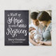 Personalize este cartão postal de Natal com as palavras "Uma emoção de esperança que o mundo cansado se regozija" no quadro. Personalize com uma foto do bebê, nome da família e detalhes do anúncio de nascimento. Inclua a data de nascimento do bebê, estatísticas e seu endereço de retorno de mensagens fáceis. Deseje sua família e amigos "Feliz Natal" e apresente o bebê para compartilhar esperança e alegria.
