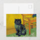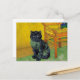 Poscard com um gato preto no estilo de Van Gogh! Esta gatinho preta senta-se sobre um chão verde sobre um fundo de decoração da Noite Estrelada. Um presente fabuloso para amantes de gatos e colecionadores de arte holandeses!