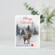 Poinsetos de Natal e veados em pintura aquosa de uma floresta nevada
