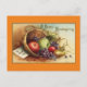 A imagem bonito e vintage de uma cesta de fruta e um desejo de "Feliz Ação de Graças" aparece na frente deste cartão postal. Com a mensagem no verso, "Que Deus o chá, seus entes queridos e casa, com Seu Amor e Bênçãos Sempre"! Uma maneira adorável de enviar saudações de Dia de Ação de Graças para a família e amigos.
