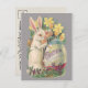 Nostálgico restaurou a imagem vitoriana do coelho branco da Páscoa pintando um ovo de Páscoa elaborado cercado por narcisos e flores de primavera.