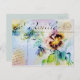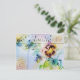 As flores pandaçais florais estão rodeadas de selos postais antiquados, guião cursiva e cores amarelas pastel, azuis, rosa, roxo, verde e castanho.