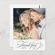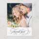 Este cartão postal de agradecimento de foto de casamento apresenta letras de caligrafia elegantes e românticas com texto personalizado no verso. Perfeito para casamentos, aniversários, formaturas e outros eventos. Para personalização avançada deste design, clique no BOTÃO FERRAMENTA DE DESIGN AZUL acima!