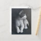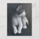 Uma pintura a óleo de um precioso gatinho listrado e branco adorna este cartão postal.