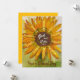 Grande girassol pintado com fundo de aquarela verde. Expressão alegre, pinceladas ousadas em pétalas pintadas à mão. Ótimo design para cartões, votos de felicidade, decoração de casa e mais.