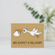 Cartão postal de gravidez fixe. Um cartão postal de cartão engraçado com cegonha com bebé e um texto pessoal: Estamos à espera de uma entrega! A maneira perfeita e original de dizer aos seus amigos que está à espera de um bebé!