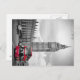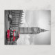 Um cartão de Big ben e um icônico ônibus vermelho duplo de dois andares em Londres, Inglaterra.
