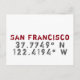 As coordenadas de longitude de São Francisco e latitude em fontes angustiadas dão a este postal um olhar urbano moderno