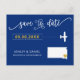 Você escolheu um lugar especial para o seu casamento. Agora é hora de celebrá-lo com este cartão postal de data de reserva, apresentando um mapa em silhueta e um pequeno avião rumo ao seu destino. Para mover o coração para o local do seu casamento, clique em personalizar e depois em "personalizar ainda mais".