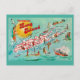 Um colorido mapa postal de Long Island, Nova York, reaproveitado em um novo cartão postal.