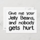 Essa design engraçada de geleia/Páscoa diz: "Dê-me seu feijão de geleia e ninguém se machuque." Excelente para caçar ovos de Páscoa, ou para quem ama feijão de geleia.