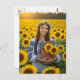 Feliz Menina Bonita Ucraniana Linda com Bordado de Girassol ao Pôr do Sol Cartão Postal para Postcrossing Ucrânia