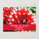 Cartão Postal de Mudança de Planos para Chá de Noiva com Dália Vermelha! O chá de noiva precisa ser adiado? Houve uma mudança de planos? As coisas acontecem por uma variedade de razões, então se você precisar informar familiares e amigos, um anúncio de mudança de data ou evento adiado é a melhor opção.