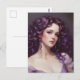 Cartão postal de mulher com cabelo roxo encaracola