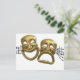 Uma partitura musical acenando e curvando atrás do icônico teatro Comédia e Tragédia