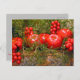 Uma cesta cheia de excesso de fruta vermelha brilhante aninhada em galhos verdes traz seu cartões de natal em um postal colorido.