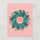 Ilustração original de uma espadilha de Natal decorada e galhos de pinheiro com bagas vermelhas e neve dizendo Veselé Vánoce, que significa Feliz Natal em Tcheco. Em cor vermelha de coral moderna e cor da menta escura.
