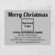 Feliz Natal! Um dos feriados mais comemorados do ano. É também uma das melhores estações para anunciar sua empresa ou promover seu nome de marca para clientes ou clientes. Cartão postal que você pode personalizar para colocar sua marca comercial e com saudação de Natal. Personalize-o e use-o para saudar seus clientes ou clientes neste Natal e como material de marketing para anunciar sua empresa ou promover seu nome de marca. Cartão postal personalizável que você pode usar para criar reconhecimento de nome de marca. As cores design são textos pretos em fundo de cinza. Para personalizar este cartão postal, carregue o logotipo da sua empresa, digite seu nome, endereço, número de telefone, e-mail e site ou a página de mídia social da sua empresa. Verifique a aparência após carregar o logotipo e digitar textos. Se a aparência lhe agrada, você pode colocar seu pedido agora. Se você precisar redimensionar e mover o logotipo e os textos para o ajustado neste cartão postal, troque a ferramenta design. Você também pode alterar a cor do plano de fundo, a cor da fonte e o estilo da fonte na ferramenta design. Você também pode adicionar imagens e textos no verso deste cartão postal na ferramenta design. Feliz Natal! Desejando mais vendas neste feriado.