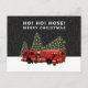 Cartões de Natal de bombeiro com humor de férias, Papai Noel e caminhão de bombeiros.