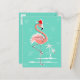 Na moda design com um toque retrorreflector com um flamingo rosa festivo vestindo um chapéu vermelho de Papai Noel, estrelas e palmeiras decoradas com bolhas colocadas sobre um fundo aqua. Um design personalizável para você personalizar com seu próprio texto, imagens e ideias. Uma imagem de arte digital original criada por Quirky Chic.