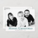 Cartaz de fotos na moda e Natal moderno com uma foto de cheio. Na frente do cartão é um desejo Feliz de Natal, o nome da família e o ano, e uma foto - insira uma foto da sua família ou de qualquer outra foto favorita na modelo. Na parte de trás está uma árvore de Natal feita com flocos de neve e nome de um remetente. Personalize todo o texto do cartão-postal ou apague-o.