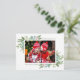 Cartão-postal do Cartões de natal de Fotografia do Quadro de Natal. Todo texto é totalmente personalizável, opção para remover ou adicionar texto. Flores de inverno de aquarelas.