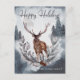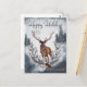 Cartão-postal de Natal de inverno para cinza Watercolor. Design apresenta cinza de cor d'água, cena de neve de inverno de árvores de Natal, montanhas, veados com bagas sagradas. Elegante textura suave de fundo. Para mais personalização, entre em contato comigo em kbasandra@gmail.com.