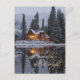 Diga Feliz Natal com esta bela fotografia de uma cabana de madeira num lago na floresta. A luz da varanda brilha para receber visitantes de férias e o lago é suave como vidro. Tudo está calmo, tudo está brilhante nesta configuração serena, como está impresso na frente da placa de posto em folha de papel prensada a ouro real. A parte de trás do cartão postal fornece um simples sentimento de feriado e um lugar para sua assinatura pessoal. Ao receber seu pedido, tudo o que você precisa fazer é endereçá-los e soltá-los pelo correio.