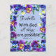 Cartaz personalizável com o verso inspiracional e encorajador da bíblia "Com Deus todas as coisas são possíveis." de Matthew 19:26, com cor d'água pintada de flores azuis e púrpuras.