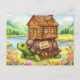 Envie um anúncio encantador com o nosso cartão postal de Novo Endereço único, com uma ilustração encantadora: uma casa acolhedora, acolhida de forma desenfreada nas costas de uma tartaruga, embrenhando-se lentamente através de um campo pitoresco por uma lagoa serena. Esta imagem balnear captura perfeitamente a sensação de se mover ao seu próprio ritmo e encontrar tranquilidade em novos arredores.