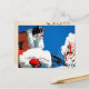 Vintage Papais noeis russos soprando coisas no cartão postal de Natal. Imagem vintage restaurada de alta qualidade.