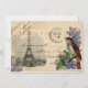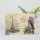 Uma imagem vintage da Torre Eiffel em Paris e um doce pássaro vitoriano empoleirado num ramo de lilases são colocados contra um velho postal francês com carimbo postal e endereço em excelente de letra neste adorável design. Colagem digital da artista Anita Barnard. Perfeito para uma festa de chá de panela, aniversário ou jardim, ou qualquer evento. Apenas adicione suas informações no verso da linda fonte Piranesi. Isso também faria um anúncio excelente, simplesmente mudaria a redação. Este design também está disponível como uma capas de iphone, com outros designs de Paris correspondentes no meu compro Zazzle.
