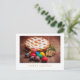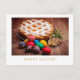 Cartão postal de páscoa com torta italiana de queijo pastiera e ovos coloridos.
