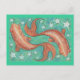 Peixes, os peixes, nadando num rio cheio de estrelas. Sinal de água, de 20 de fevereiro a 20 de março (pode haver variação nas datas). Cartão postal com um design personalizável laranja, azul e verde para você personalizar com seu próprio texto, imagens e ideias. Um lápis de cor original e desenho de tinta metálica de Jess Perry.