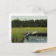 Fotografia original. Um pescador joga uma rede no pântano salgado na Ilha Pawleys, SC. Ele está rodeado de gaivotas e outras aves da costa, na esperança de despejos, Na frente, "Ilha Pawleys", que é um modelo. Limpe a caixa de texto se preferir o cartão sem a legenda.