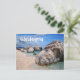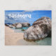 Cartão postal com grandes rochas na praia de areia de Cala Mariolu no Golfo de Orosei, Sardenha, Itália com o texto: "Sardegna", italiano para "Sardenha".